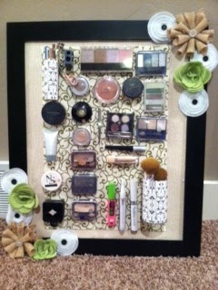 And here is the first makeup board I made, it matches perfect to my bathroom. I have loved how easy it is to stay organized and keep the bathroom clear of clutter especially in our bathroom that doesn't have a lot of counter space. Just hang on the wall and its like organizational artwork!