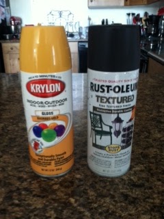 I then took the fames back out to the garage for some color! One I painted black and the other yellow with a little dark antiquing. These are the colors I used for my frames.